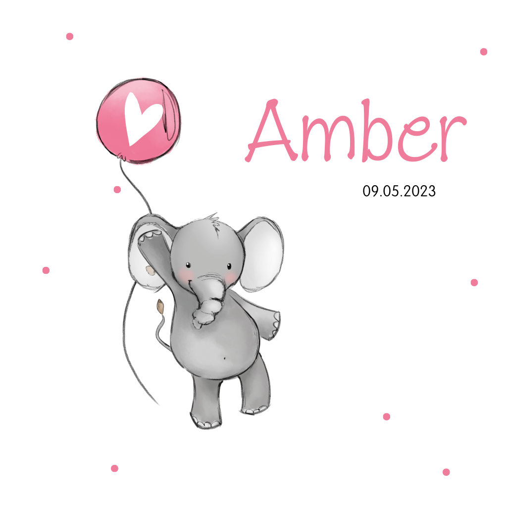 Schattig olifantje met ballon en allemaal kleine hartjes. Deze worden gedrukt in écht goudfolie: supertrendy! Iets voor jouw dochter? Zet haar naam op de voorkant en maak hem compleet met een bijpassende envelop.