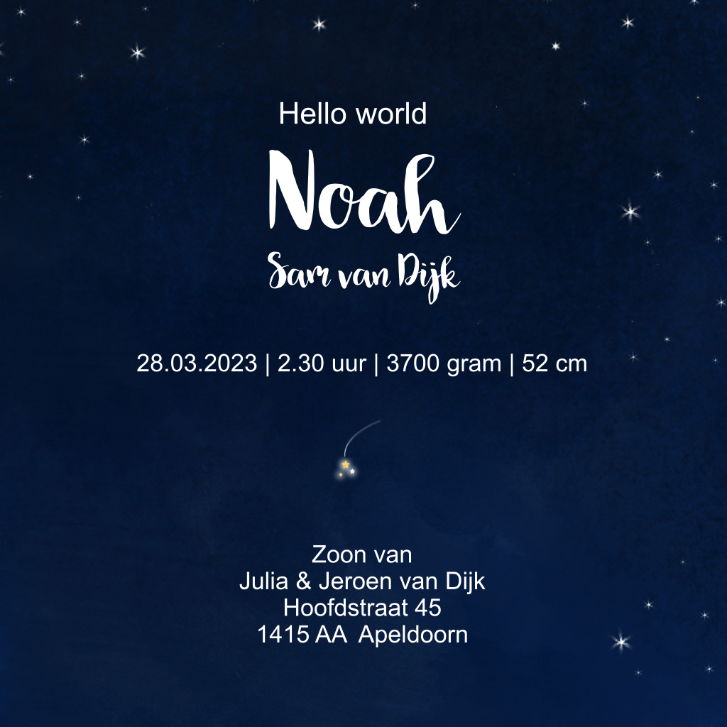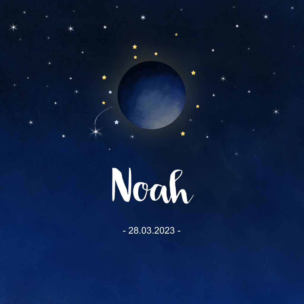 Geboortekaartje voor jongetje met volle maan en goudfolie