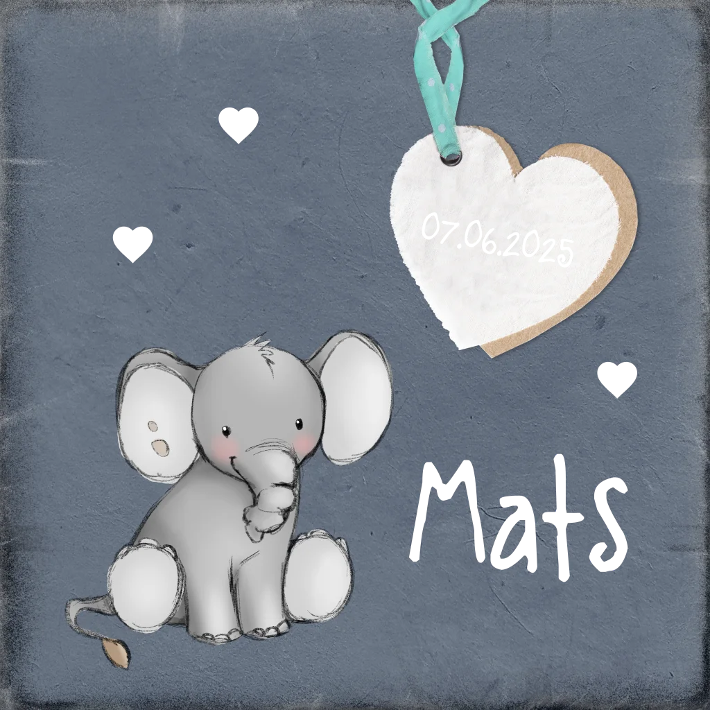 Lief geboortekaartje met een getekend olifantje op een vintage achtergrond. Wil je een extra speciaal geboortekaartje, dan zit je hier goed. Want de naam van je baby staat in zilverfolie. Wist je dat we ook een bijpassend kraamborrelkaartje hebben?
