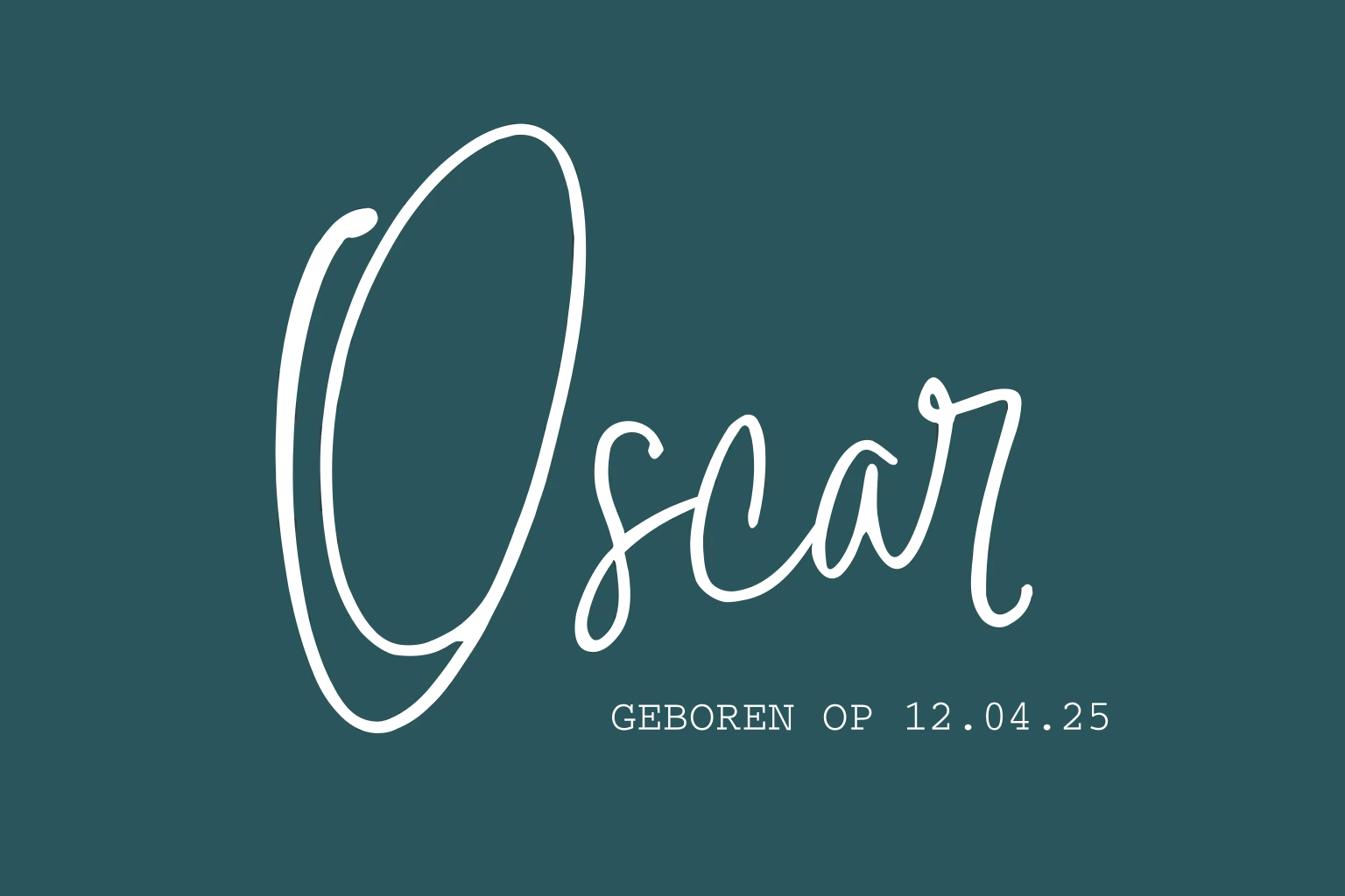 Liggend babykaartje met een trendy look; de naam van jouw zoontje is in luxe goudfolie gedrukt! Op deze donkergrijze achtergrond komt het mooi naar voren. Liever een andere kleur? Probeer verschillende mogelijkheden in de online editor en maak hem zelf naar wens!
