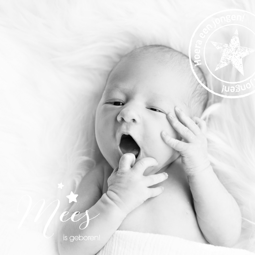 Vierkant geboortekaartje met een foto van jouw kleintje en een stoer stempel met ster. Deze en de tekst zijn gedrukt in luxe goudfolie. Dé trend van het moment! Maak hem helemaal af met eigen teksten en een bijpassende envelop.