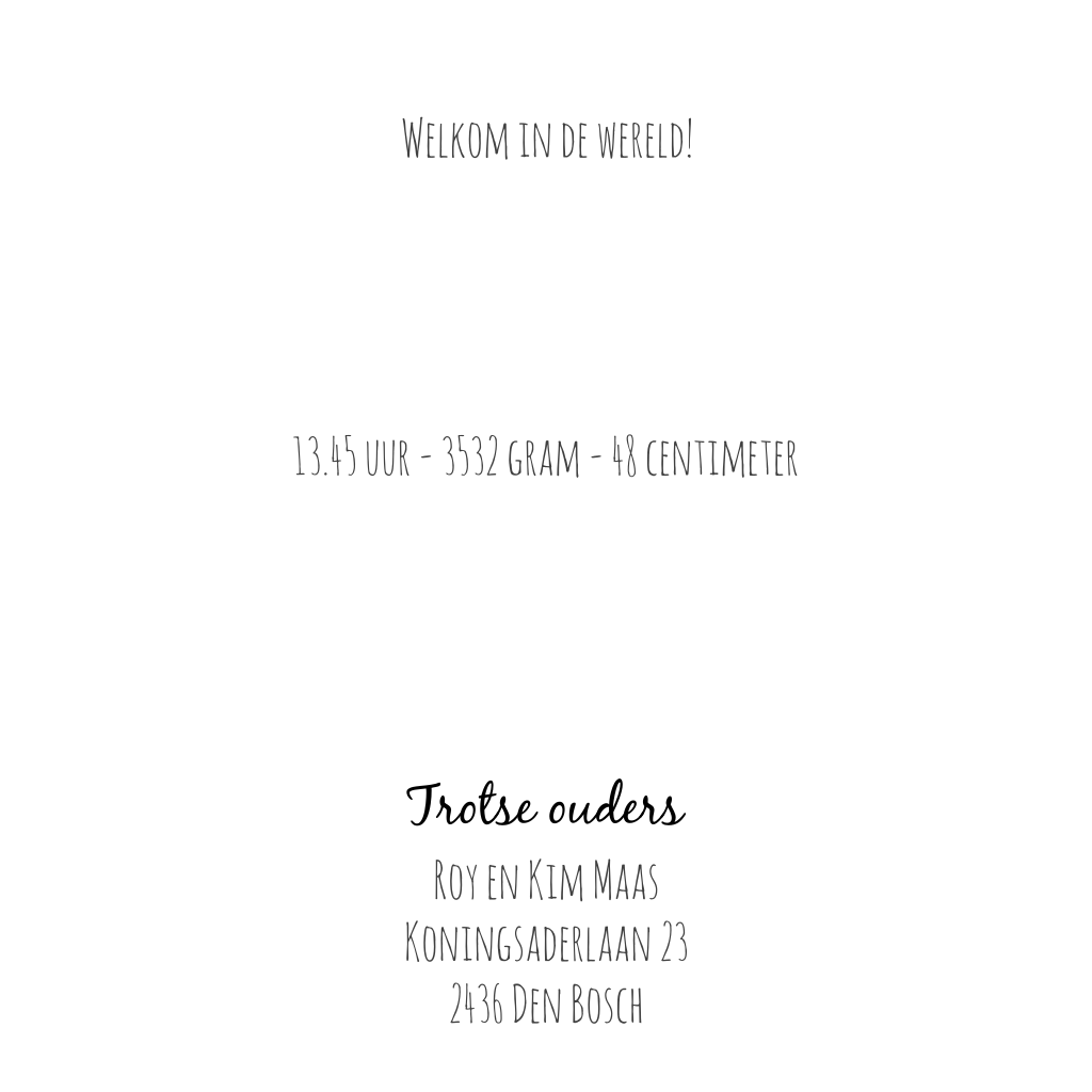 Let op: Deze kaart heeft een langere verzendtijd: voor 18.00 uur besteld = de volgende werkdag gedrukt en verzonden.
