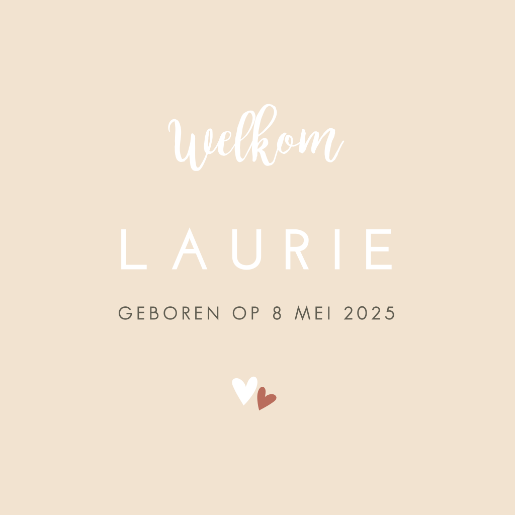 Strak geboortekaartje met nude-kleur en zacht groen en terracotta. Helemaal van nu met de goudfolie letters! Let op: Deze kaart heeft een langere verzendtijd: voor 18.00 uur besteld = de volgende werkdag gedrukt en verzonden.