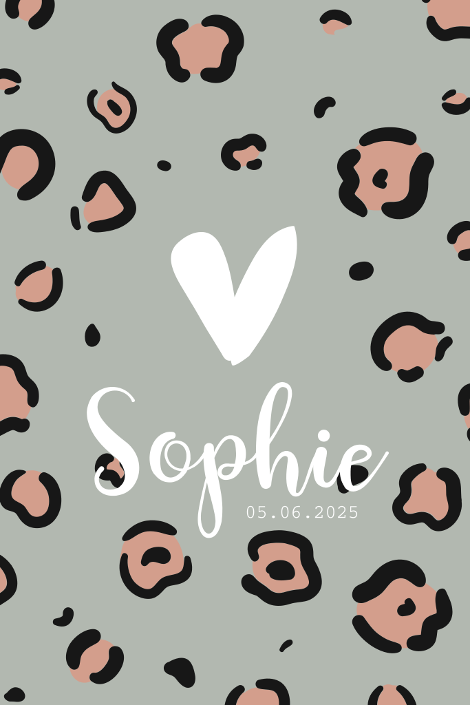 Goudfolie | Geboortekaartje met panterprint en gouden hart