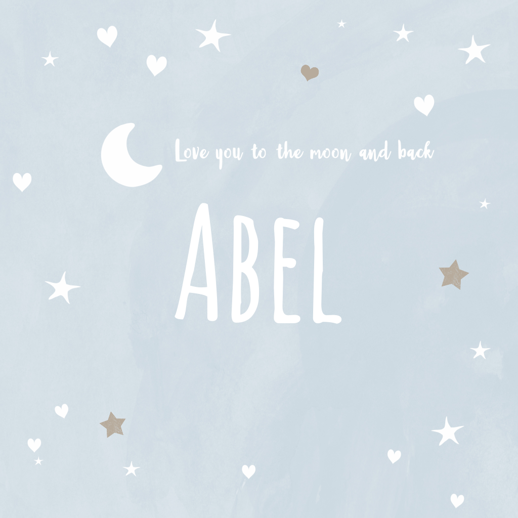 Zilverfolie geboortekaartje met lief maantje, hartjes en sterren en de tekst 'love you to the moon and back'.