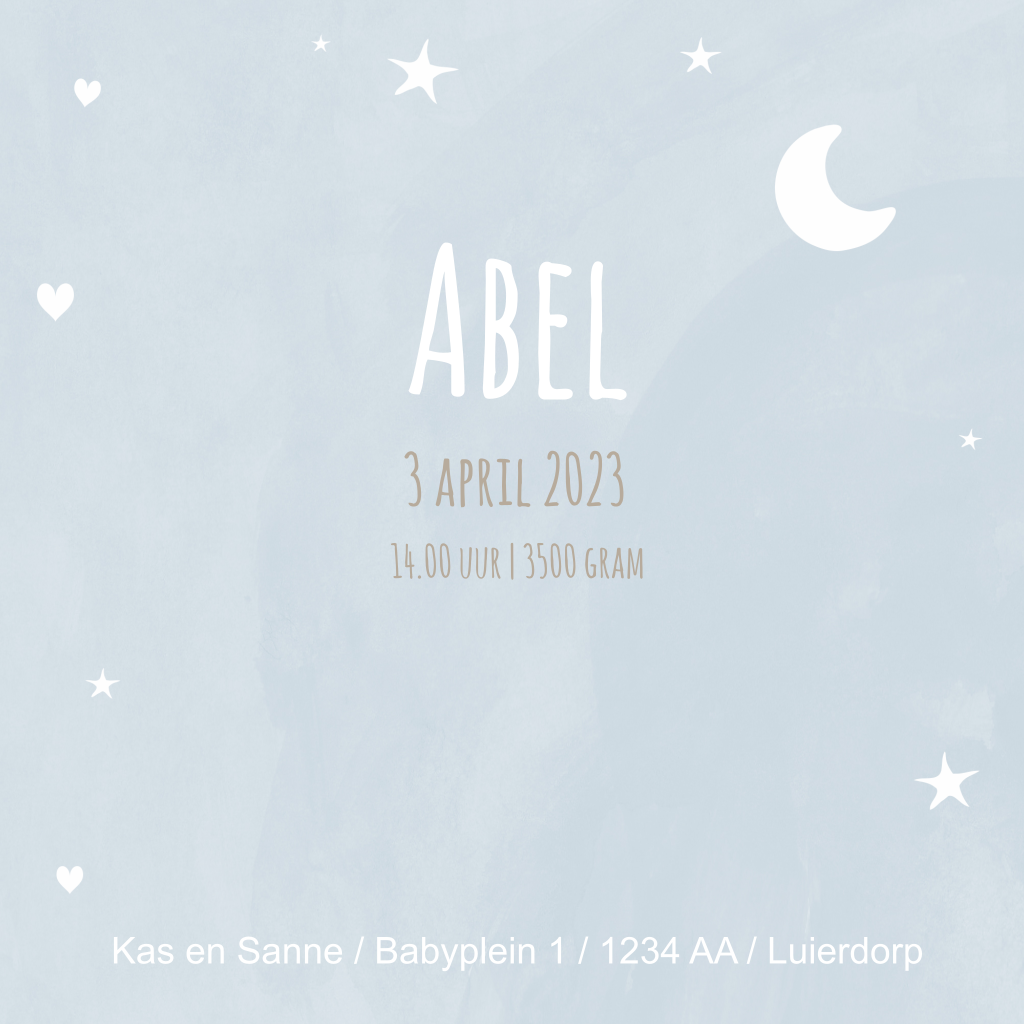 Zilverfolie geboortekaartje met maan en sterren
