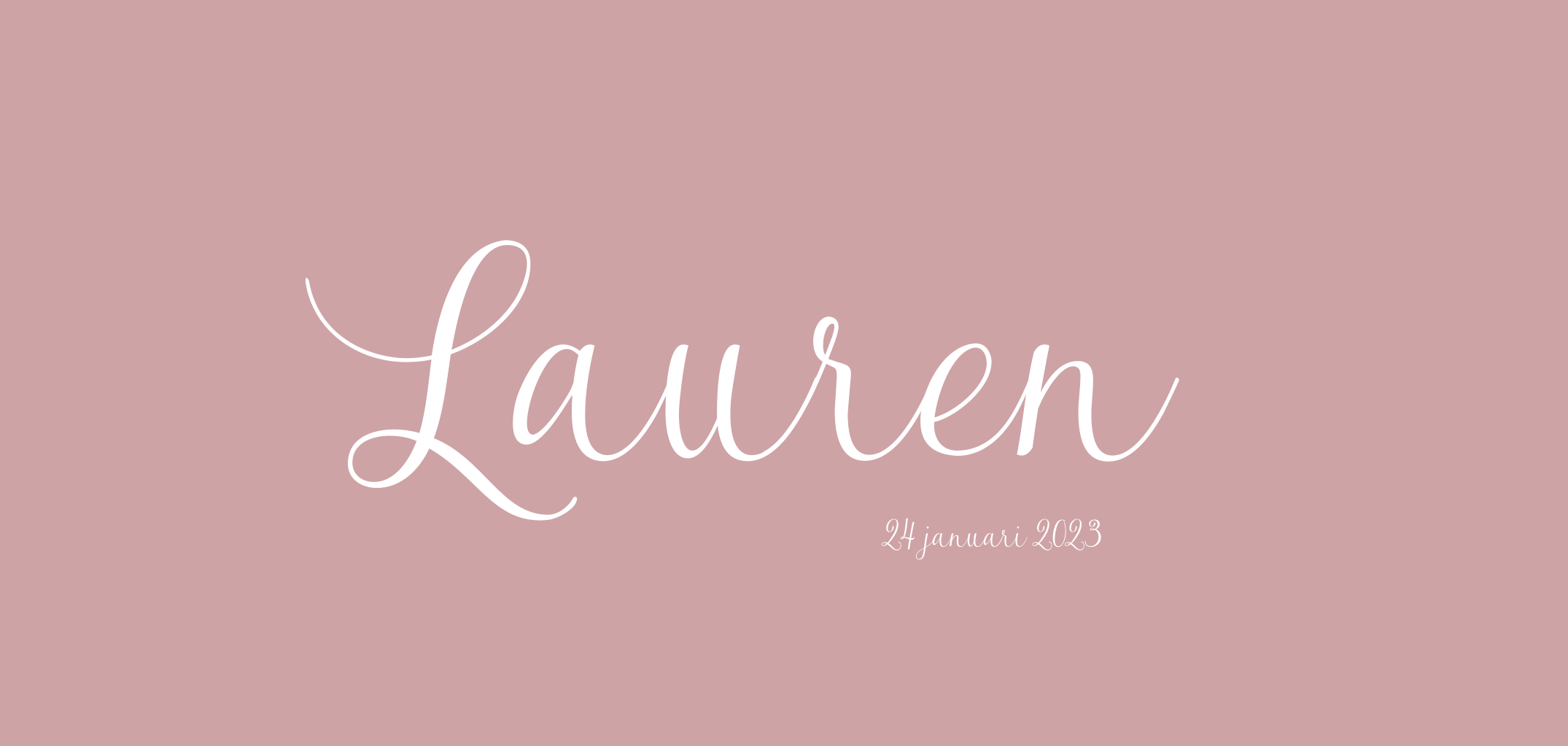 Panorama geboortekaartje met zilverfolie babynaam op oudroze.