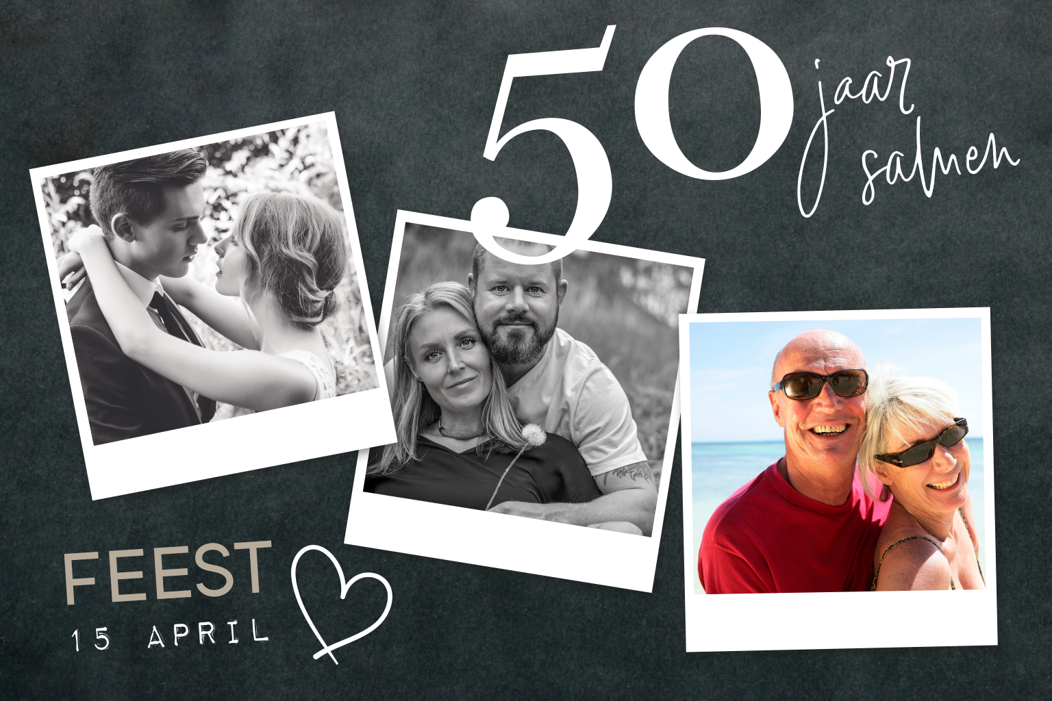 Chique goudfolie uitnodiging 50 jaar getrouwd met foto's