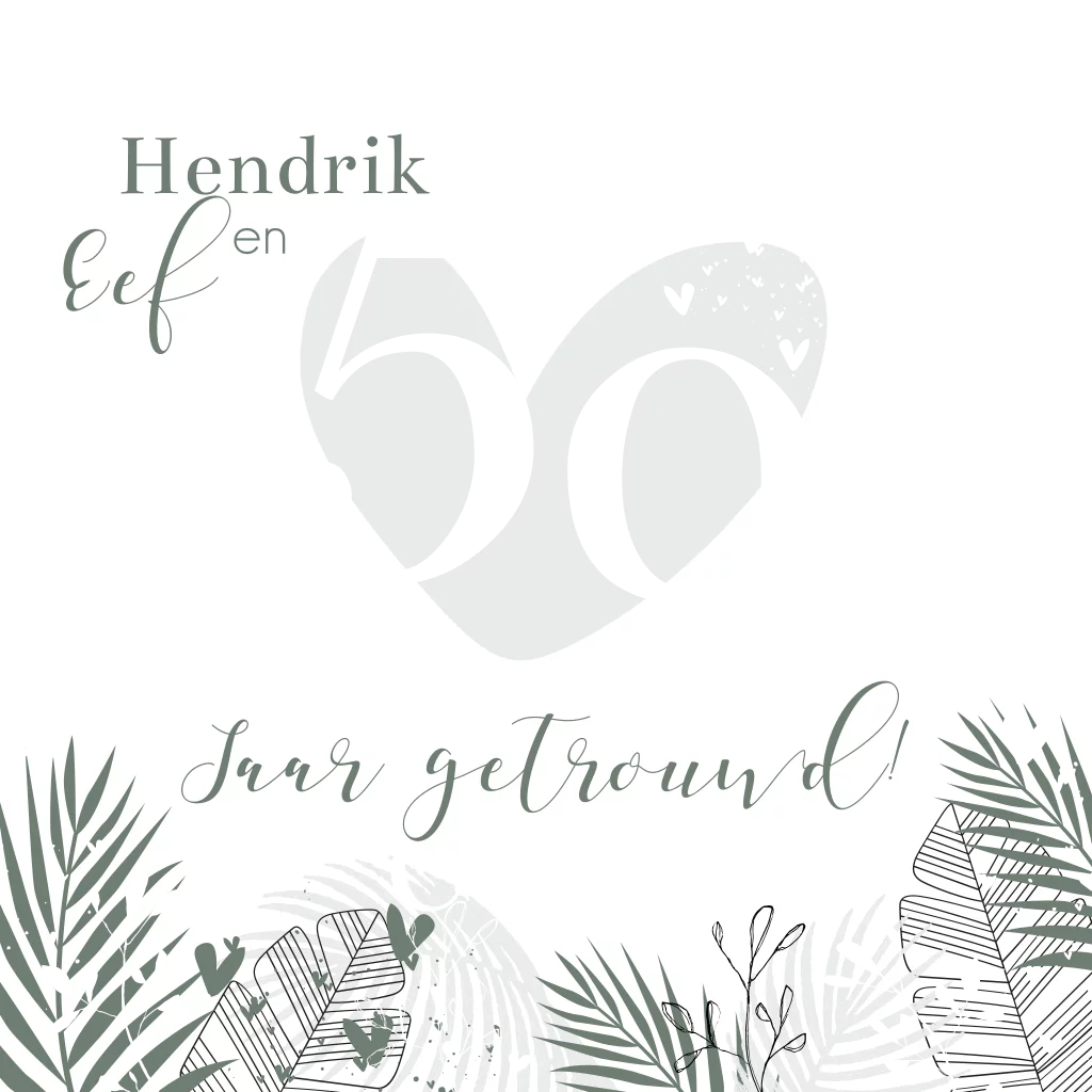 Stijlvolle goudfolie jubileumkaart 50 jaar met botanische bladeren