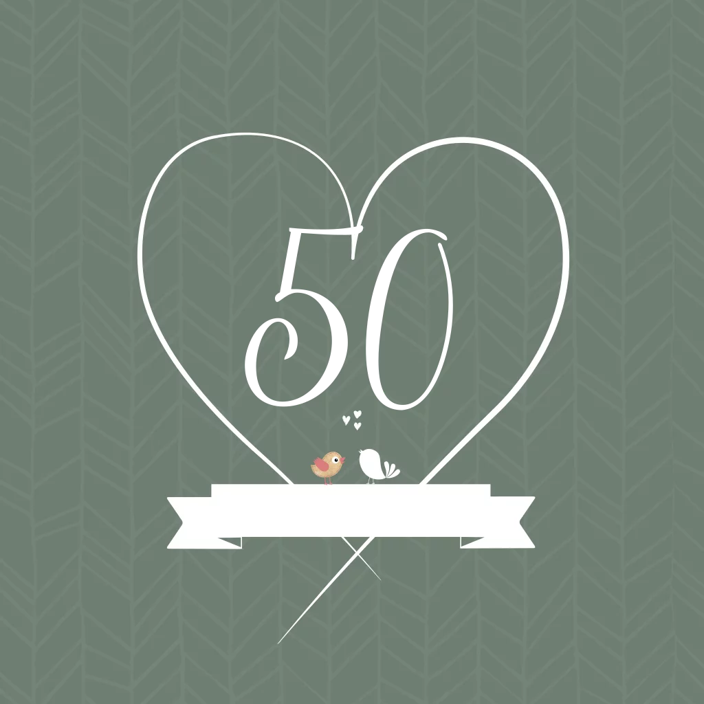 Romantische goudfolie jubileumkaart 50 jarig huwelijk met groen hart