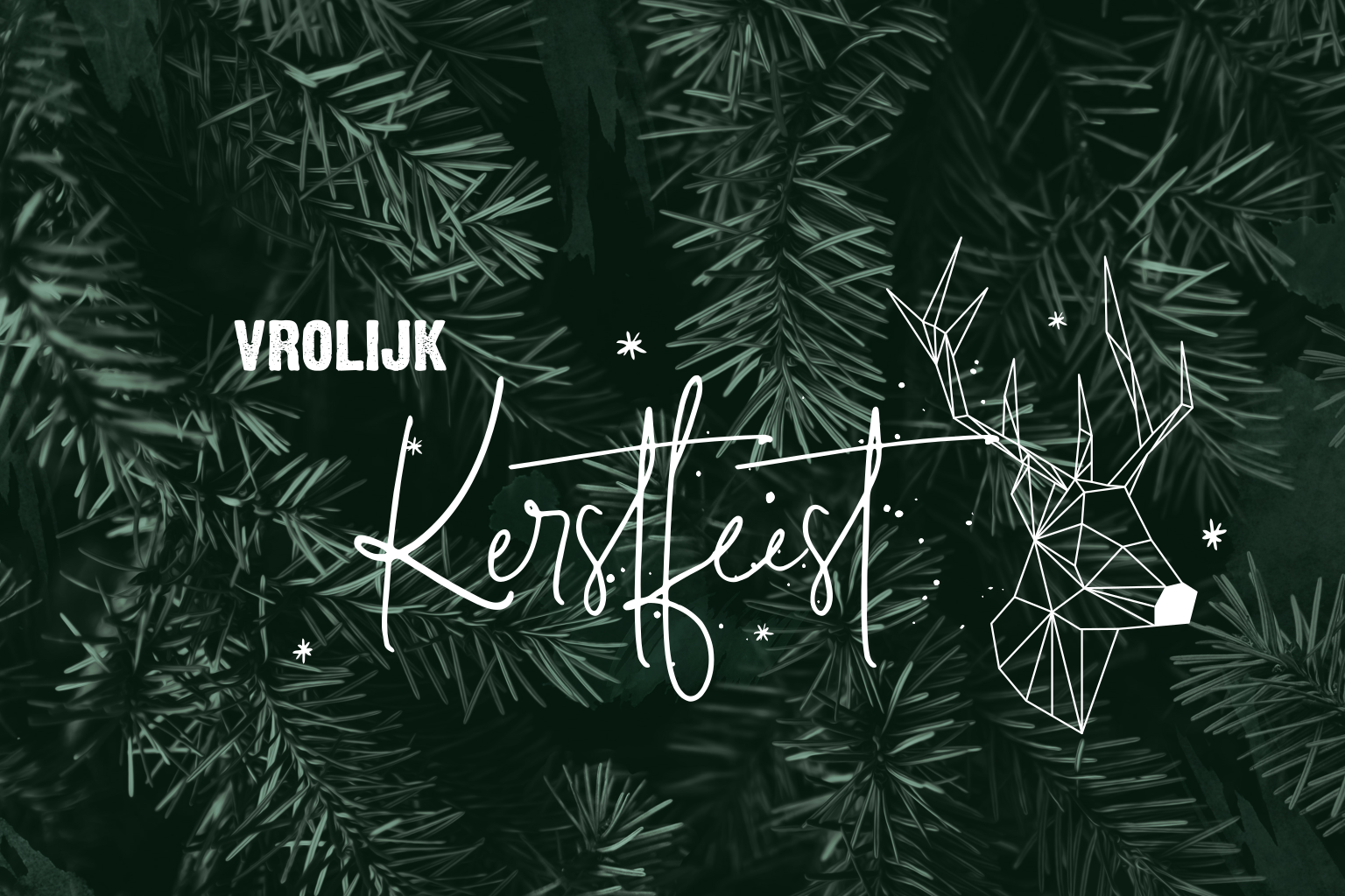 Chique kerstkaart met goudfolie teksten en elegante tekening van een rendier.