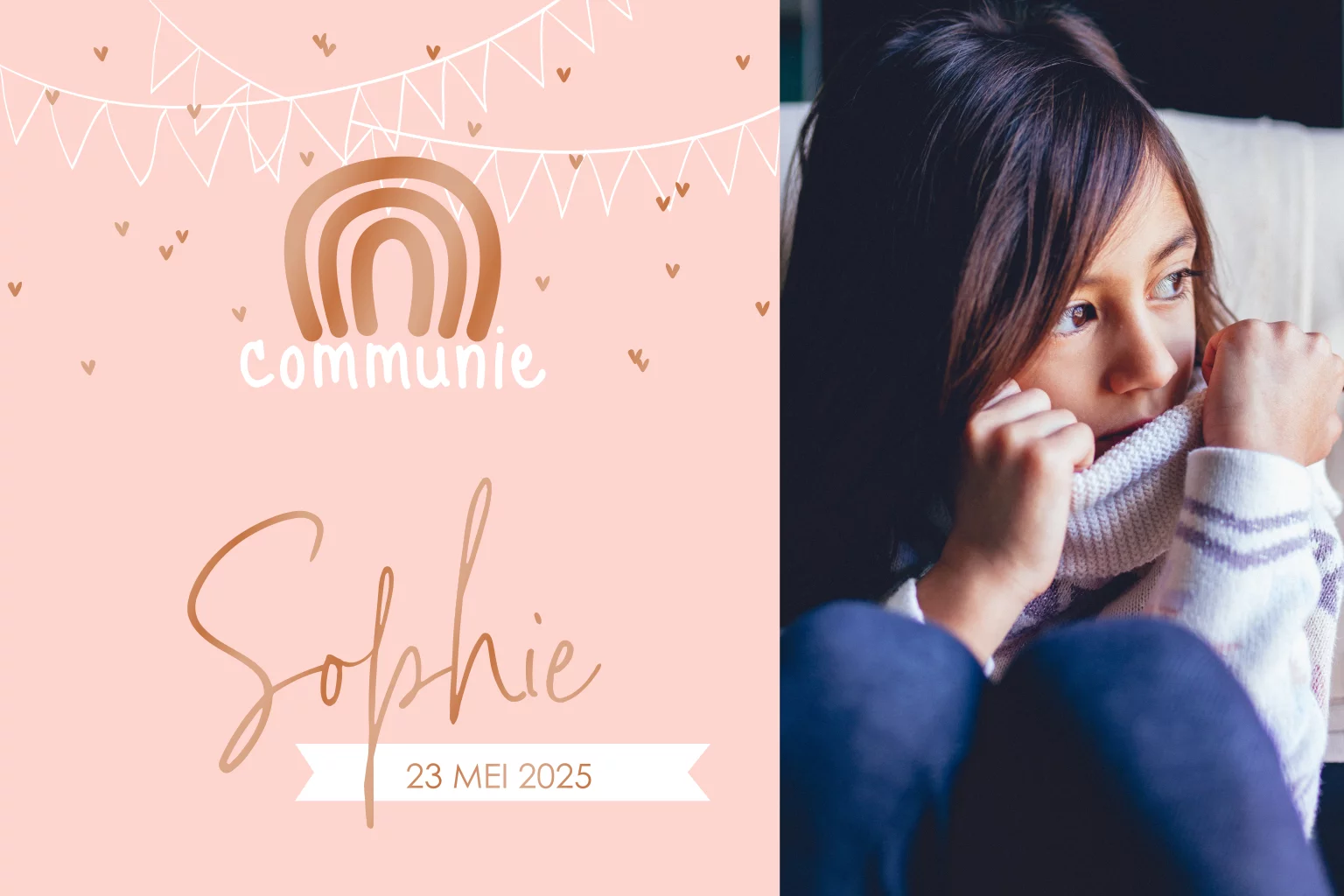 Communiekaart met slingers en regenboog in hoogglans