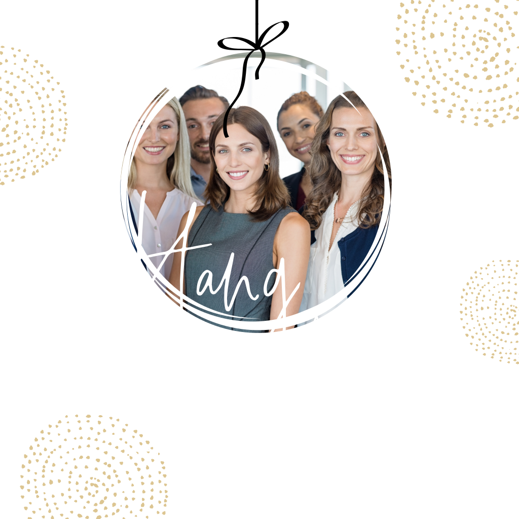 Goudfolie zakelijke kerstkaart met foto in een kerstbal