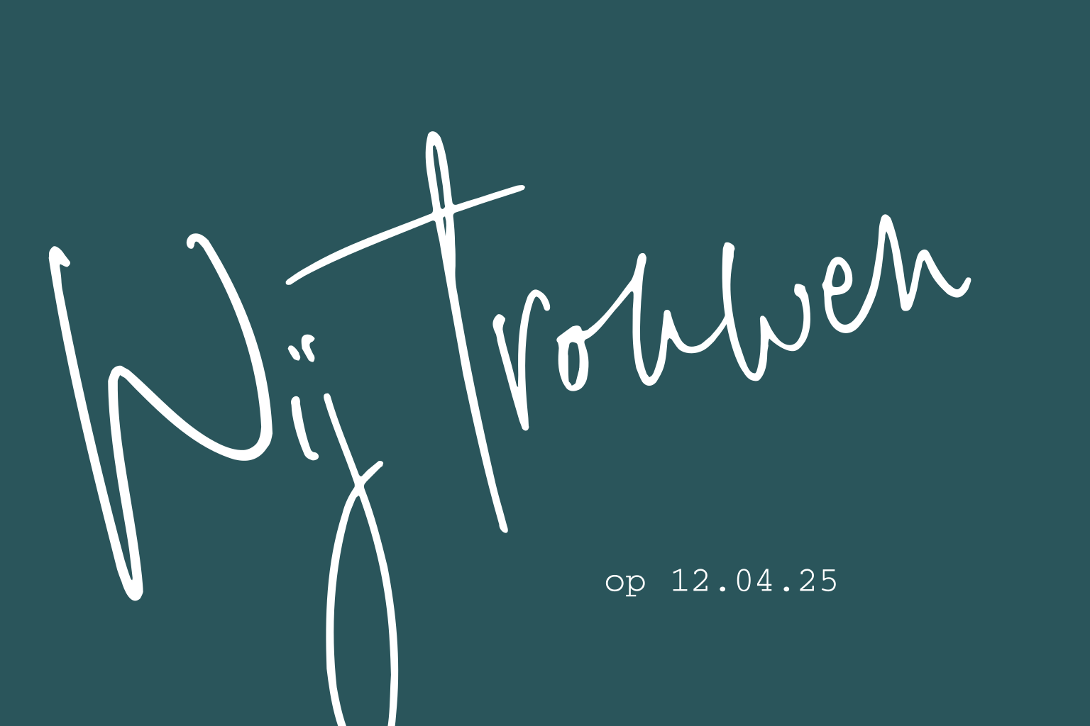 Simpele trouwkaart met goudfolie op een groene achtergrond. Je kunt de teksten zelf wijzigen.