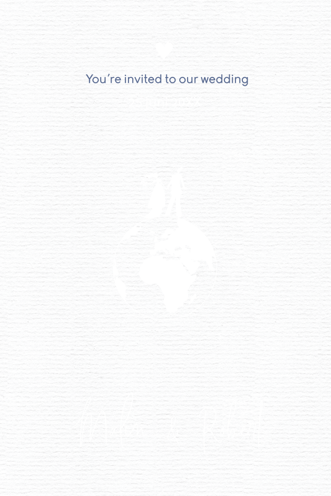 Goudfolie trouwkaart met silhouet van bruidspaar op wereldbol
