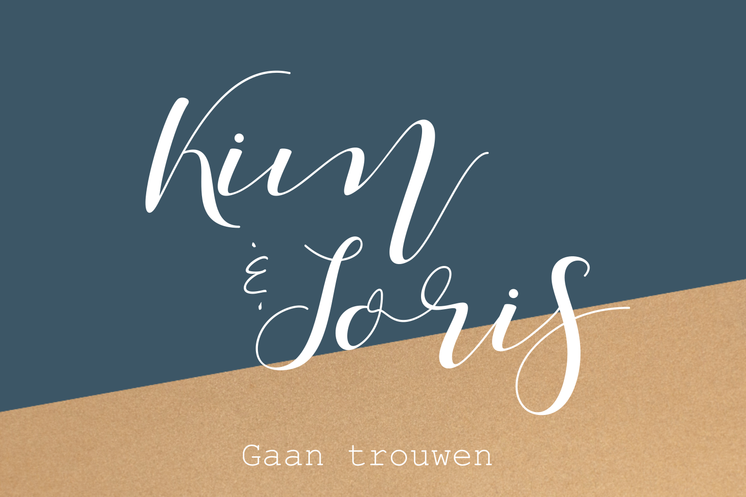 Stoere goudfolie trouwkaart met combinatie van blauw en kraft