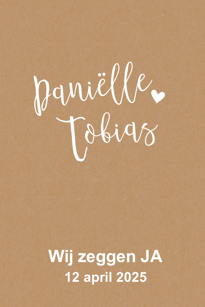 Originele trouwkaart met kraftlook en daarop jullie namen in goudfolie. Dat ziet er leuk uit! Tip: combineer het met een trouwkaart met goud inlay.