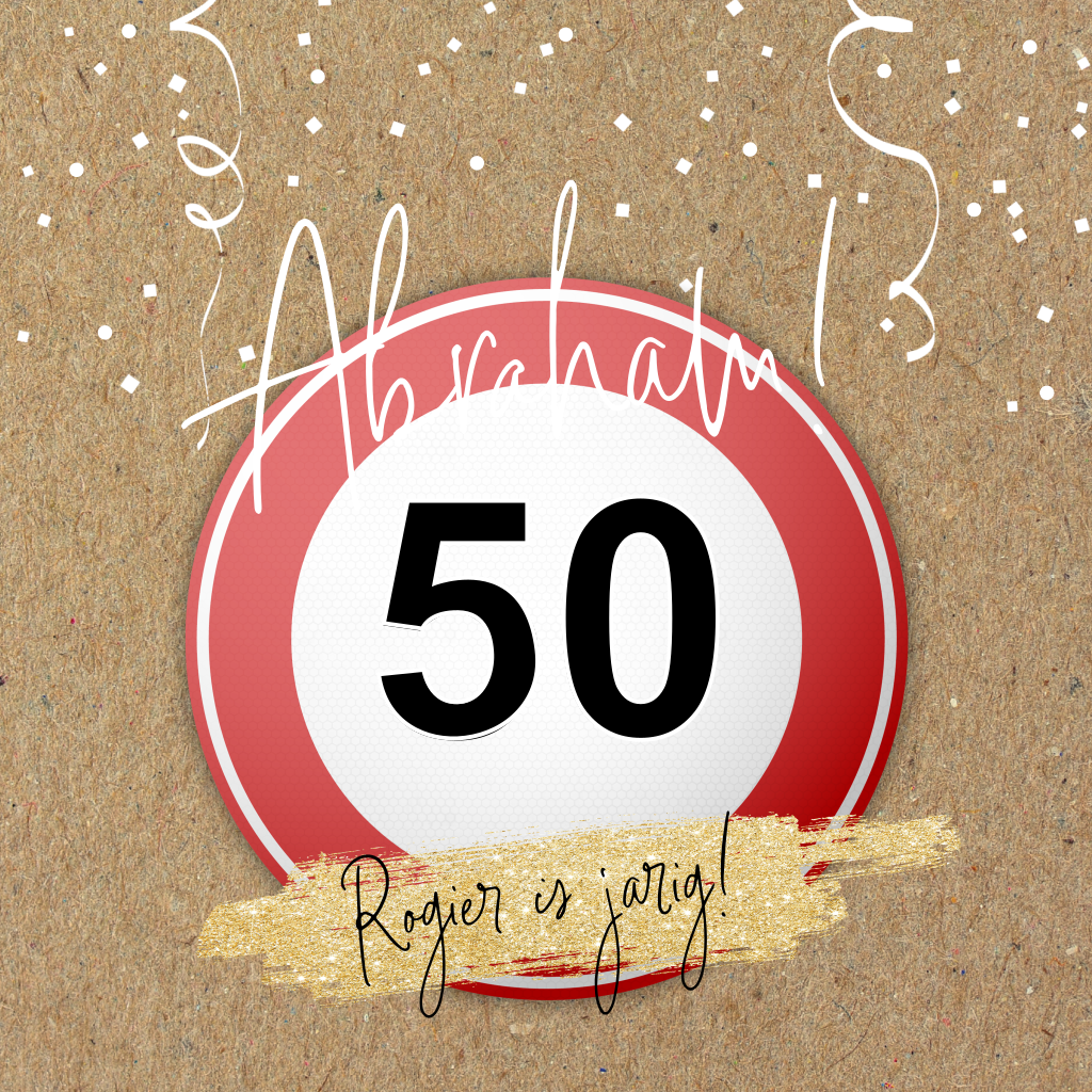 Goudfolie uitnodiging met verkeersbord voor 50 jaar