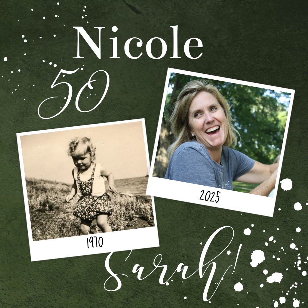 Stijlvolle verjaardagsuitnodiging 50 jaar vrouw met goudfolie op groen