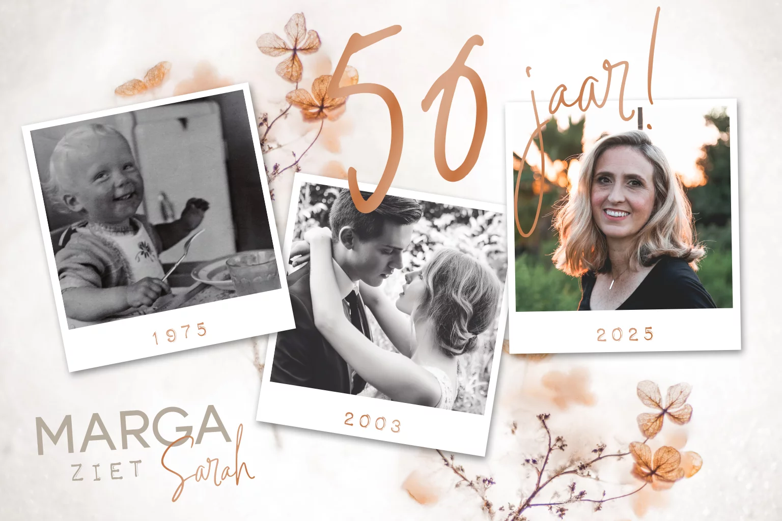 Stijlvolle verjaardagsuitnodiging 50 jaar vrouw met foto's