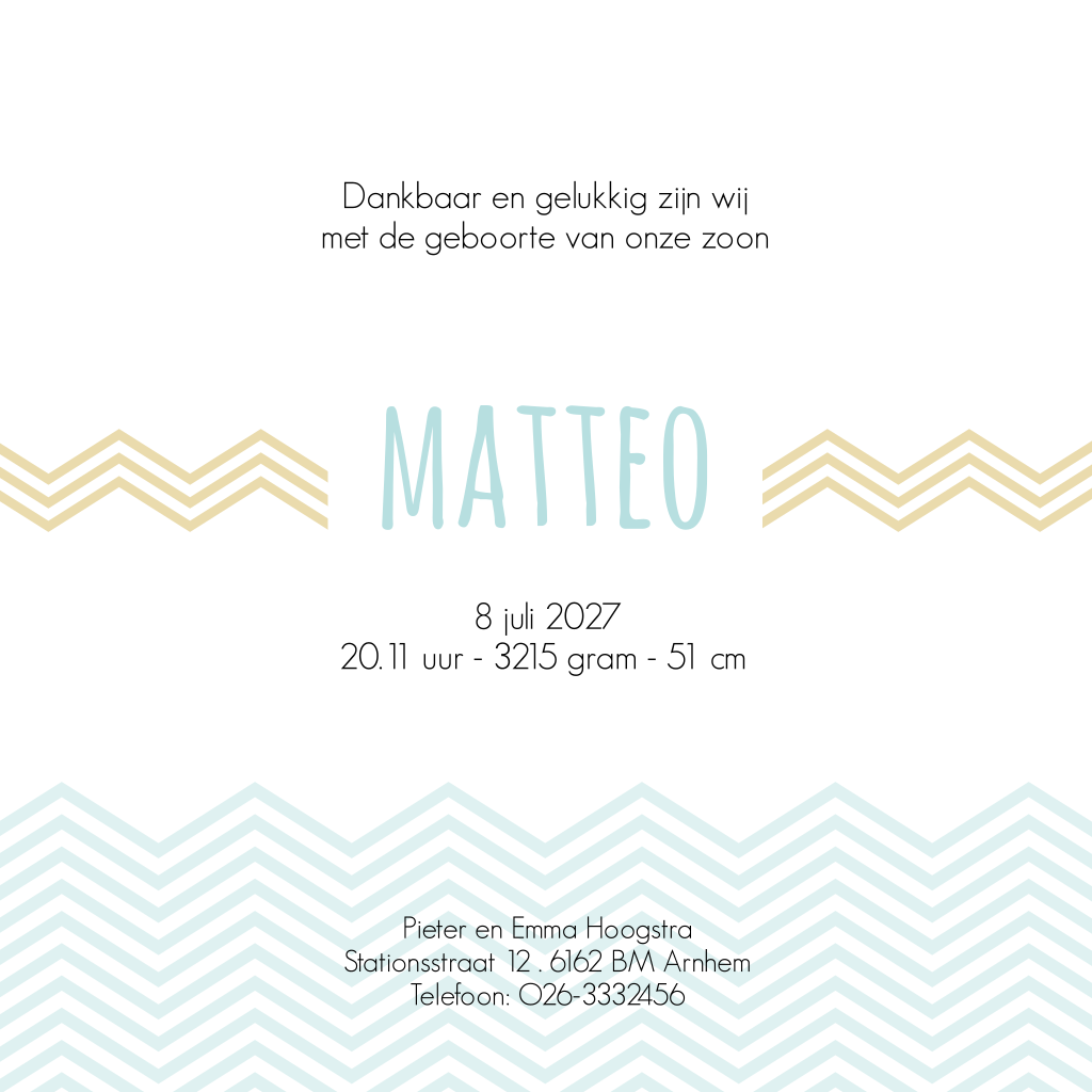 Leuke geboortekaart met zigzag in blauw en hallo in foliedruk
