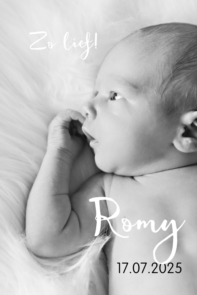 Hip geboortekaartje met goudfolie teksten op de voorkant. Maak je eigen lieve babykaart. Let op: Deze kaart heeft een langere verzendtijd: voor 18.00 uur besteld = de volgende werkdag gedrukt en verzonden.