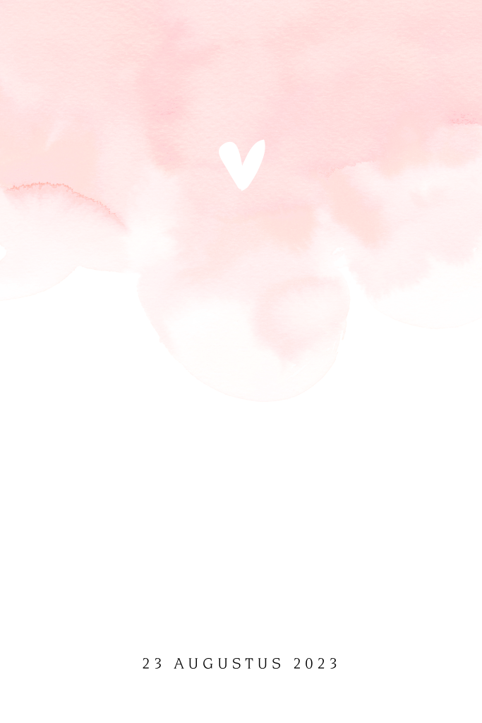 Voor de geboorte van een meisje is dit staande geboortekaartje met roze watercolour echt leuk. De naam wordt gedrukt in luxe goudfolie: echt trendy! Maak hem zelf compleet met eigen teksten, een bijpassende envelop en mooie sluitzegel.