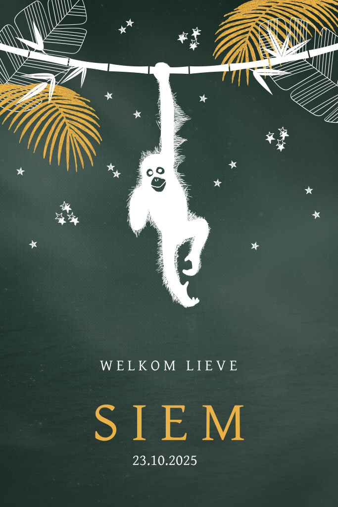 Goudfolie jungle geboortekaartje met aap