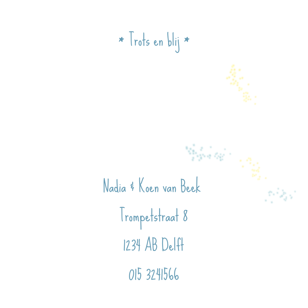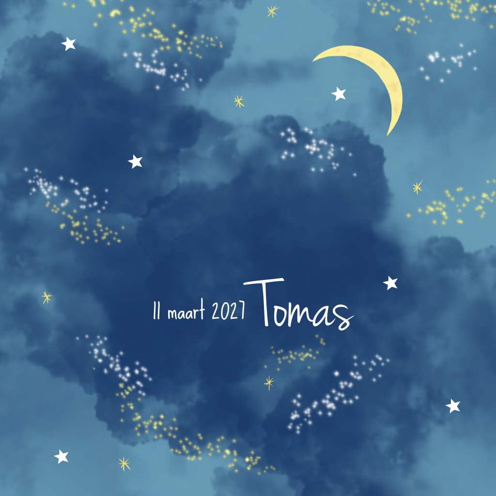 Helemaal hip, en mooi getekend geboortekaartje voor een jongen ment maan en sterren en goudfolie in de naam en de sterren.