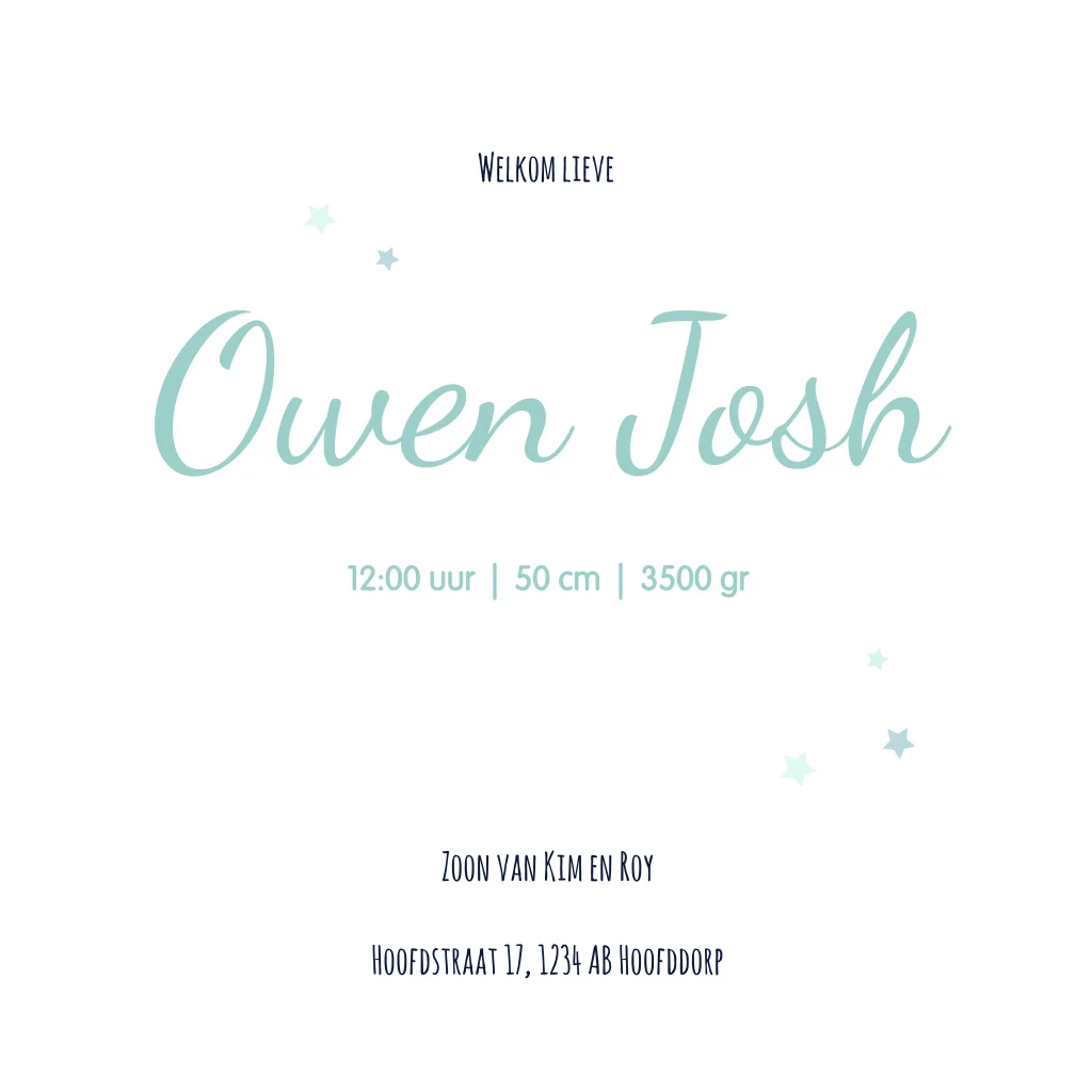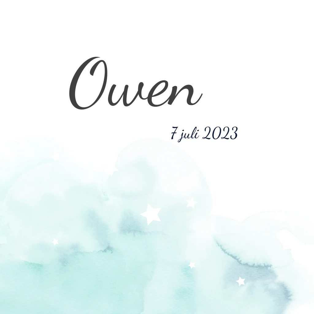 Lief babykaartje voor een zoon met sterretjes in goudfolie op een prachtige watercolour-achtergrond in mint. Wil jij ook de naam in goudfolie? Selecteer deze dan en kies bij de kleuropties voor folie.