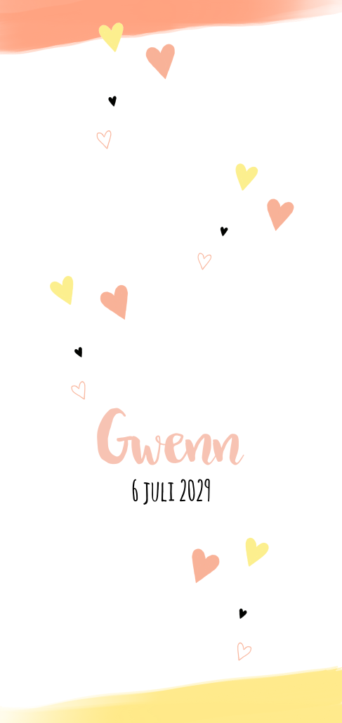 geboortekaartje voor een meisje met hartjes en goudfolie