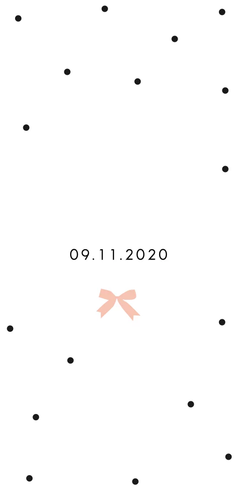 Goudfolie geboortekaartje voor meisje met gezellige stippen, de naam in goudfolie en een roze silhouet van een strikje. Let op: Deze kaart heeft een langere verzendtijd: voor 18.00 uur besteld = de volgende werkdag gedrukt en verzonden.