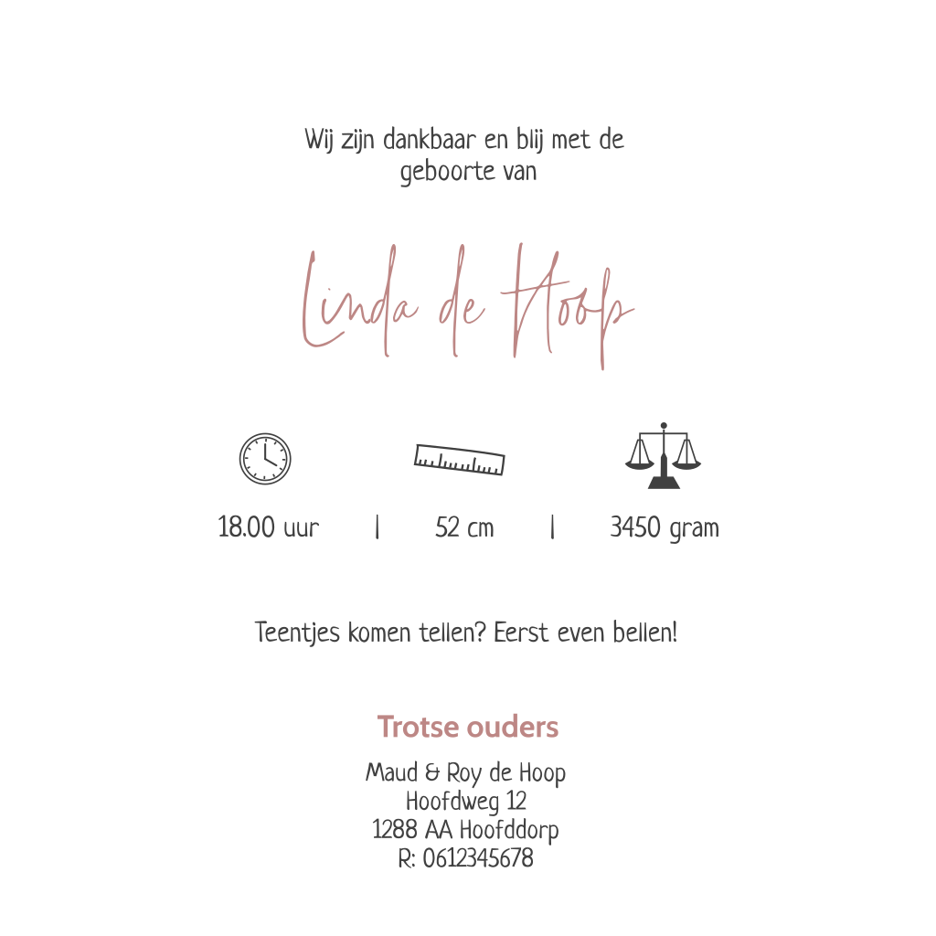 Let op: Deze kaart heeft een langere verzendtijd: voor 18.00 uur besteld = de volgende werkdag gedrukt en verzonden.