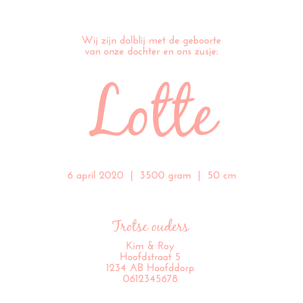 Let op: Deze kaart heeft een langere verzendtijd: voor 18.00 uur besteld = de volgende werkdag gedrukt en verzonden.