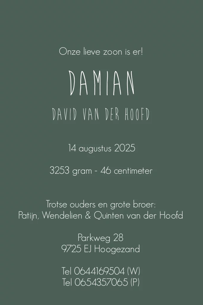Wil je een goudfolie geboortekaartje? Bekijk dan dit groene geboortekaartje met goudfolie naam en goudfolie silhouetje van een jongen met een vliegtuig. Je kunt er ook voor kiezen om koperfolie te gebruiken. Let op: Deze kaart heeft een langere verzendtijd: voor 18.00 uur besteld = de volgende werkdag gedrukt en verzonden.