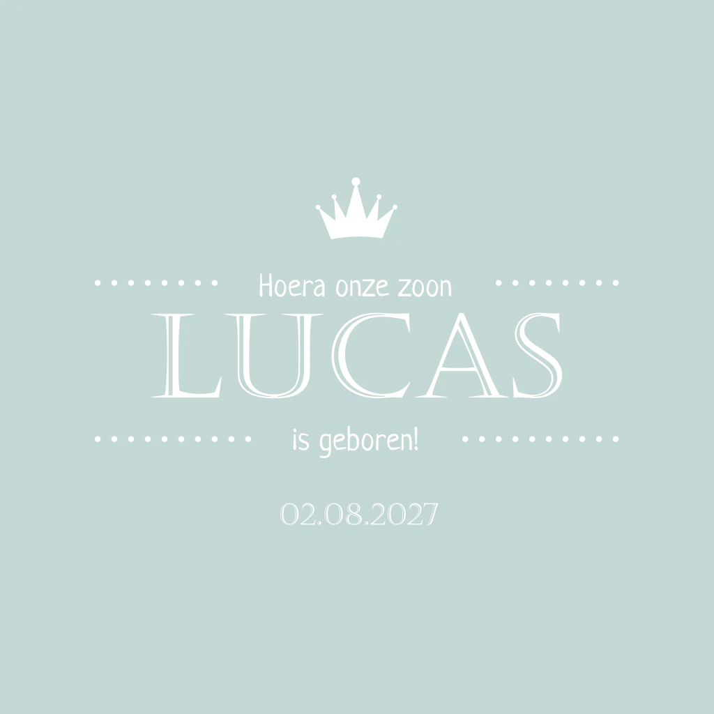 Zijn jullie op zoek naar een klassieke kaart voor de geboorte van jullie prins? Deze geboortekaart is perfect voor jullie. De naam, geboortedatum en de kroon in goudfolie geven aan de babykaart een chique uitstraling. Aan de binnenkant van de kaart staan mooie walvis en vogels in houten look. Let op: Deze kaart heeft een langere verzendtijd: voor 18.00 uur besteld = de volgende werkdag gedrukt en verzonden.
