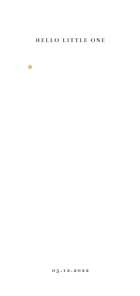 Een prachtig klassiek babykaartje voor een zoon waarbij de naam, zijn initiaal en wat sterretjes in goudfolie gedrukt worden. Let op: Deze kaart heeft een langere verzendtijd: voor 18.00 uur besteld = de volgende werkdag gedrukt en verzonden.