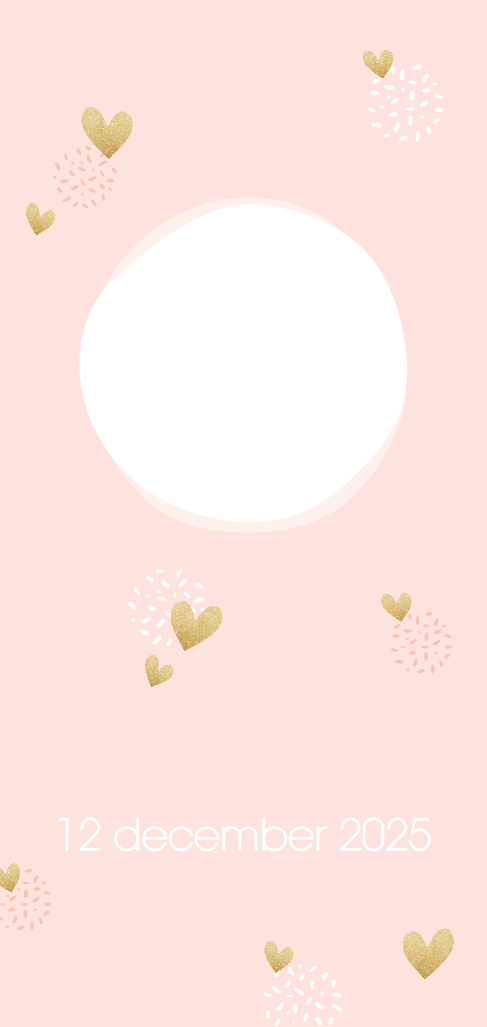 Lief geboortekaartje met rosegoudfolie teksten en vrolijke hartjes.