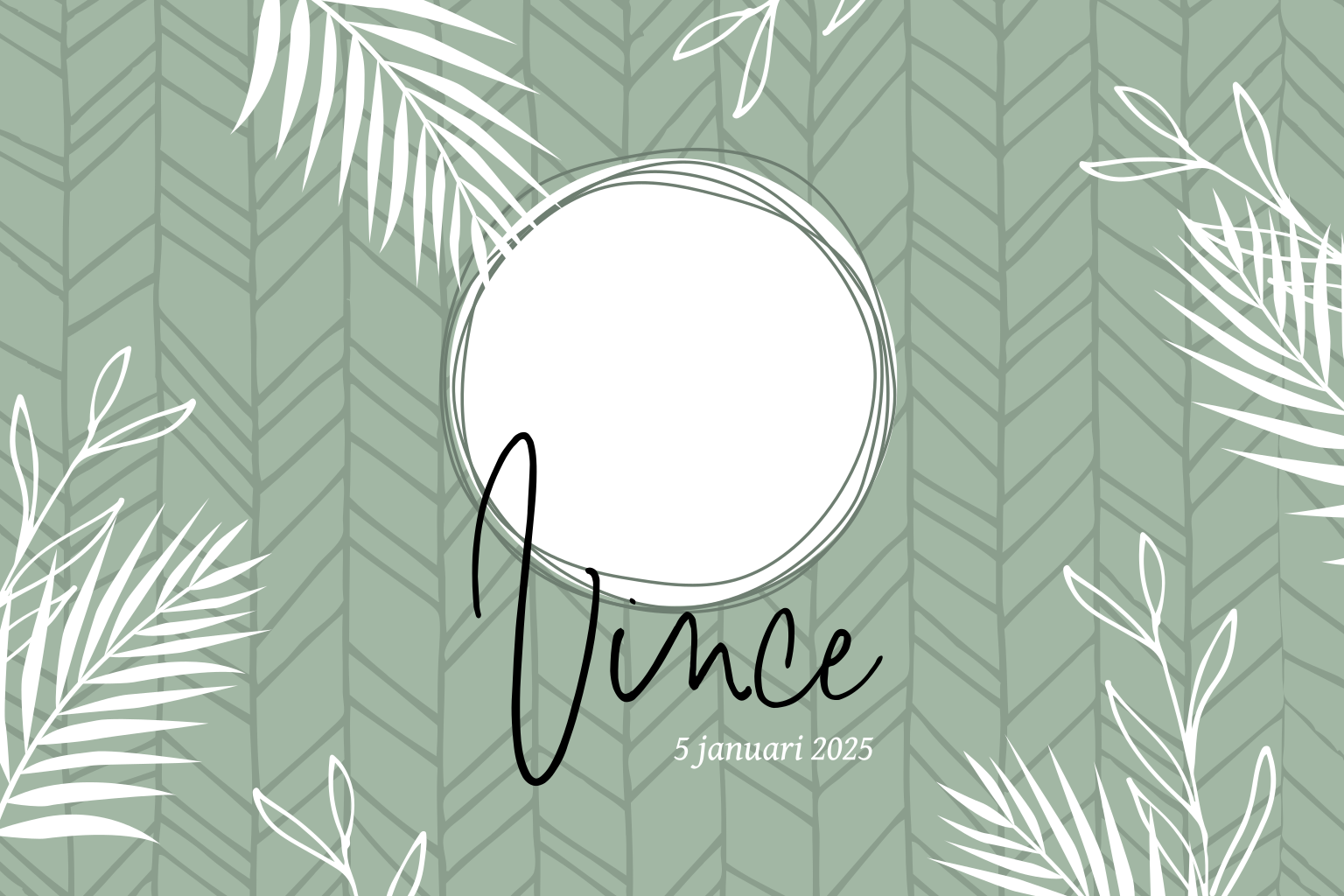 Stoer geboortekaartje met goudfolie leeuw. De leeuw is getekend en staat op een jungle achtergrond met bladeren. Zet zelf ook de teksten in goudfolie voor een uniek geboortekaartje.