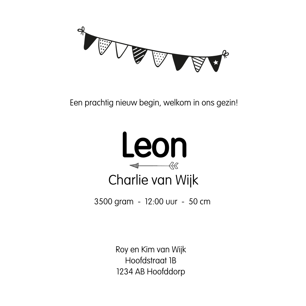 Op deze zwart-wit geboortekaart zie je de naam, de geboortedatum en een blaadje in goudfolie staan. Wil je in plaats van goudlook liever zilver of koper? Dat kan! Pas de kaart met folie zelf aan. Let op: Deze kaart heeft een langere verzendtijd: voor 18.00 uur besteld = de volgende werkdag gedrukt en verzonden.
