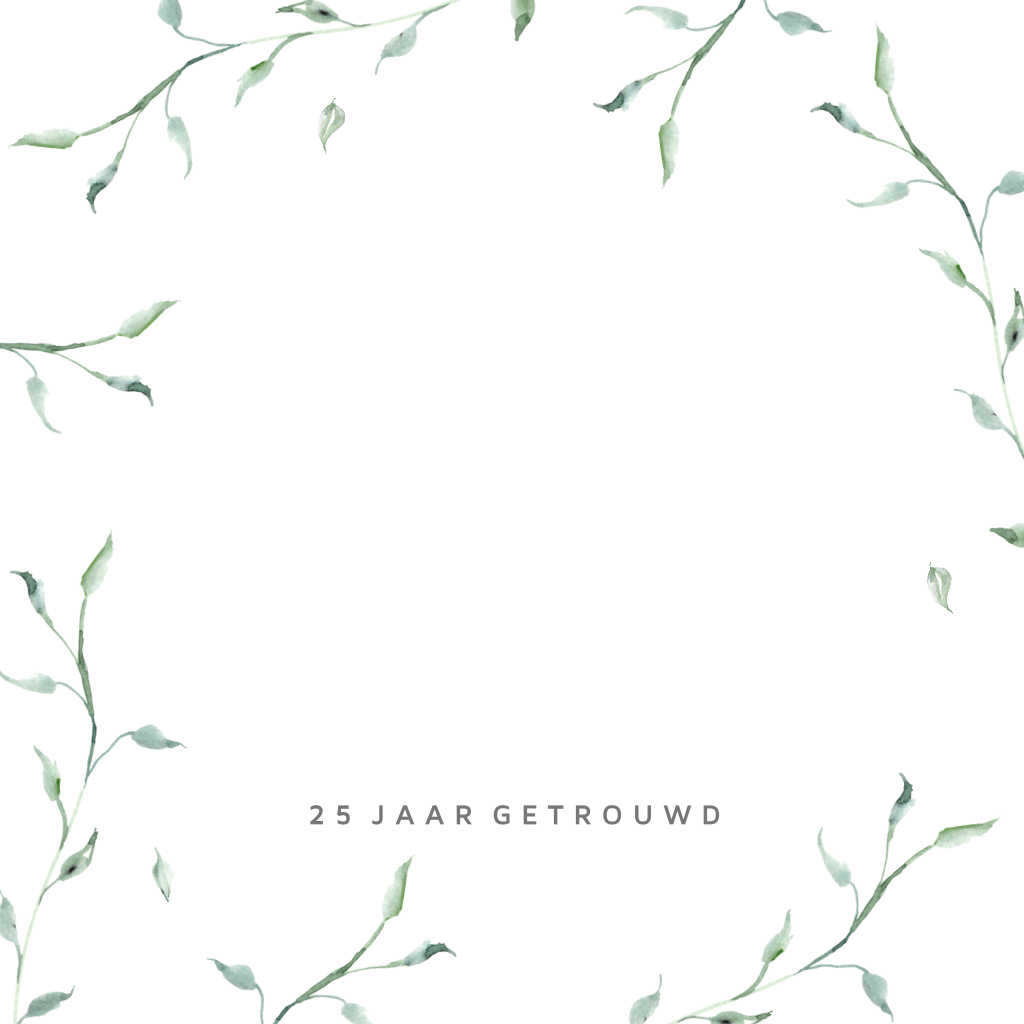 Goudfolie uitnodiging 25 jarig huwelijk met stijlvolle groene takjes