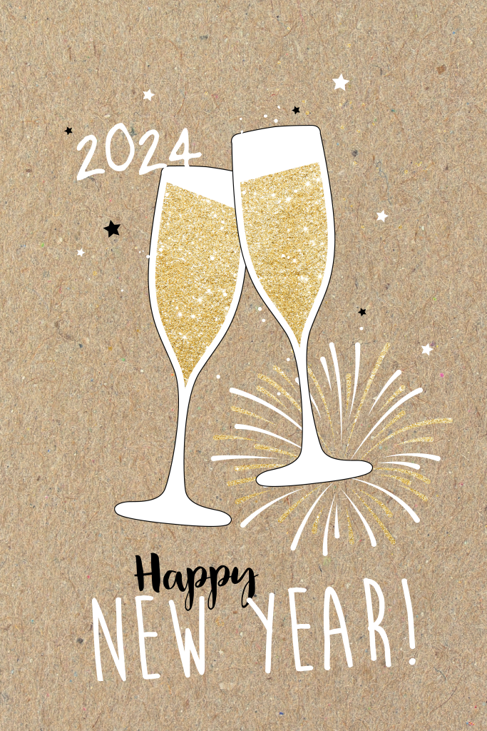 Happy new year kaart met champagne glazen en goudfolie