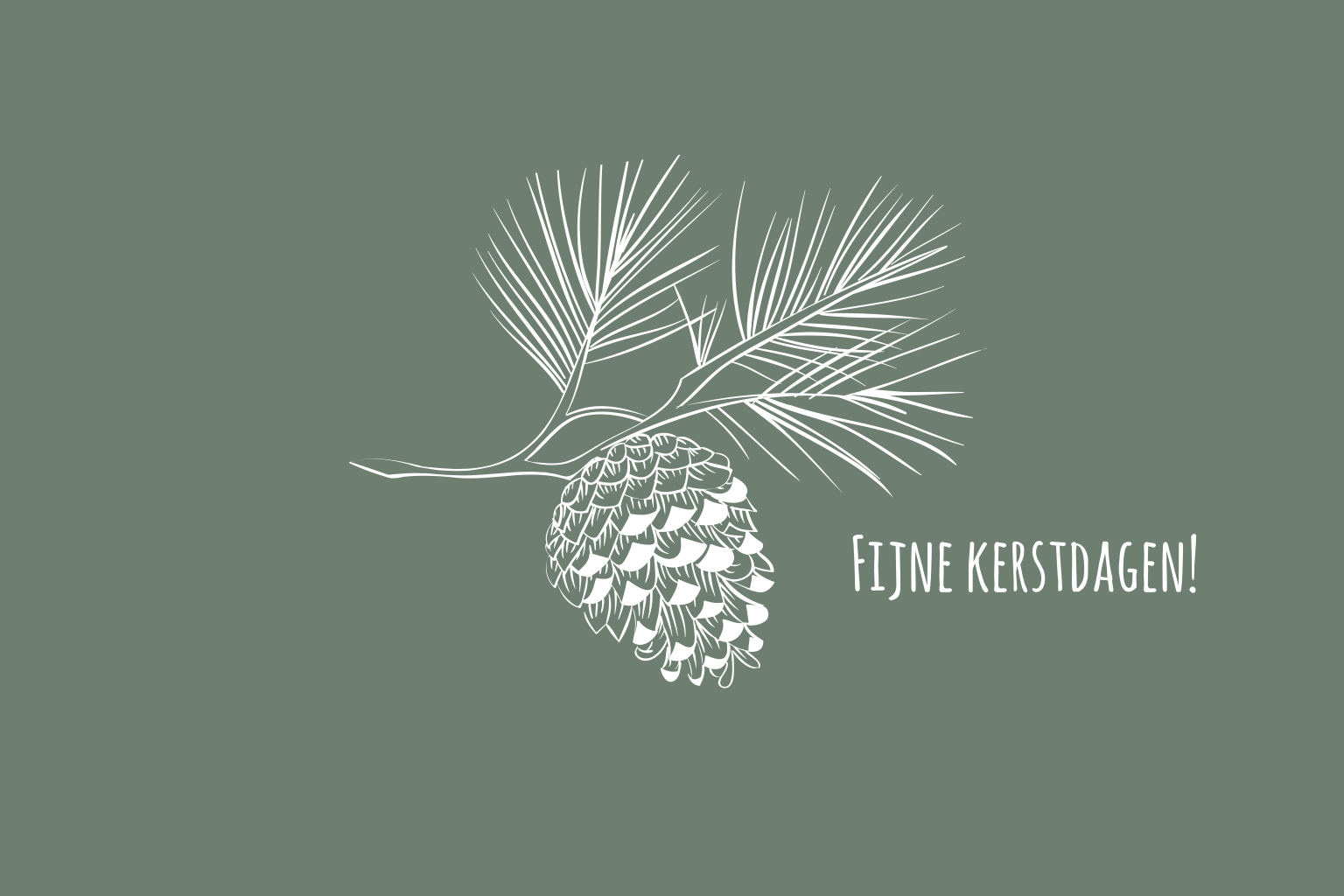 Een trendy en minimalistische kerstkaart met een illustratie van een dennenappel gedrukt in goudfolie.