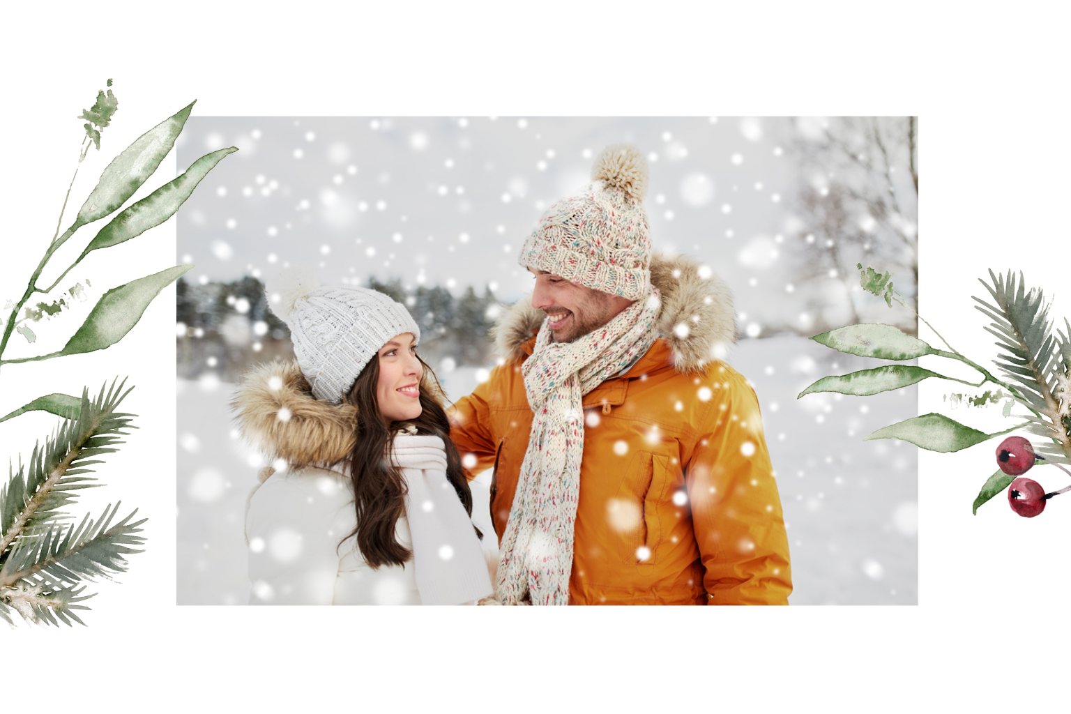 Moderne kerstkaart met foto, kersttakjes en goudfolie