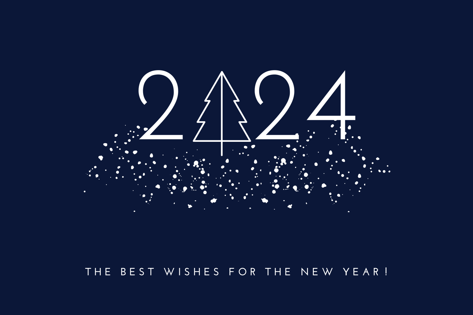 Donkerblauwe zakelijke goudfolie kerstkaart met cijfers en vuurwerk
