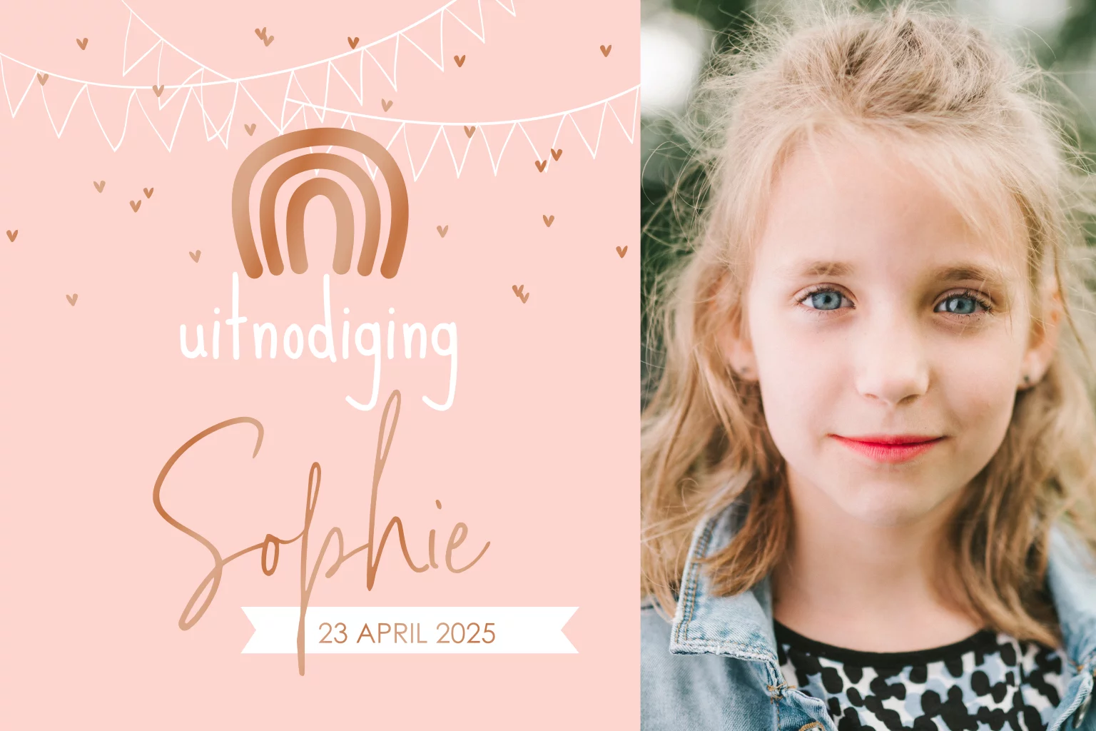 Kinderuitnodiging met vlaggetjes en regenboog in hoogglans