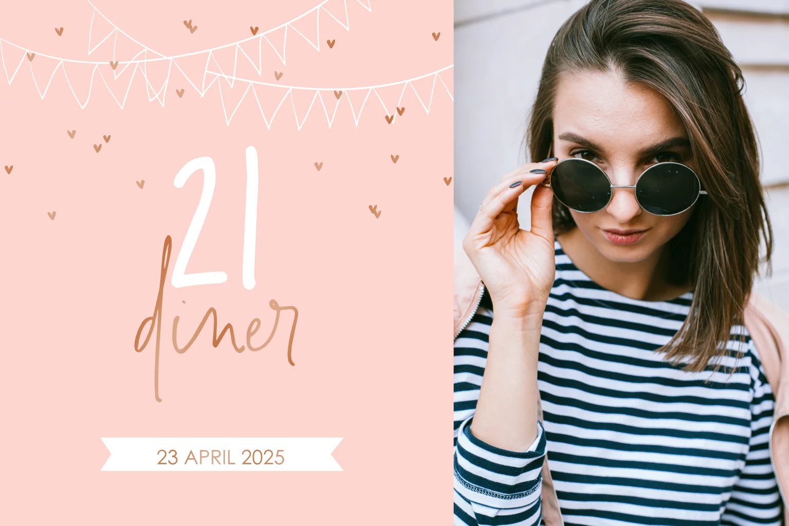 Hippe uitnodiging 21 diner met foto, slingers en hartjes