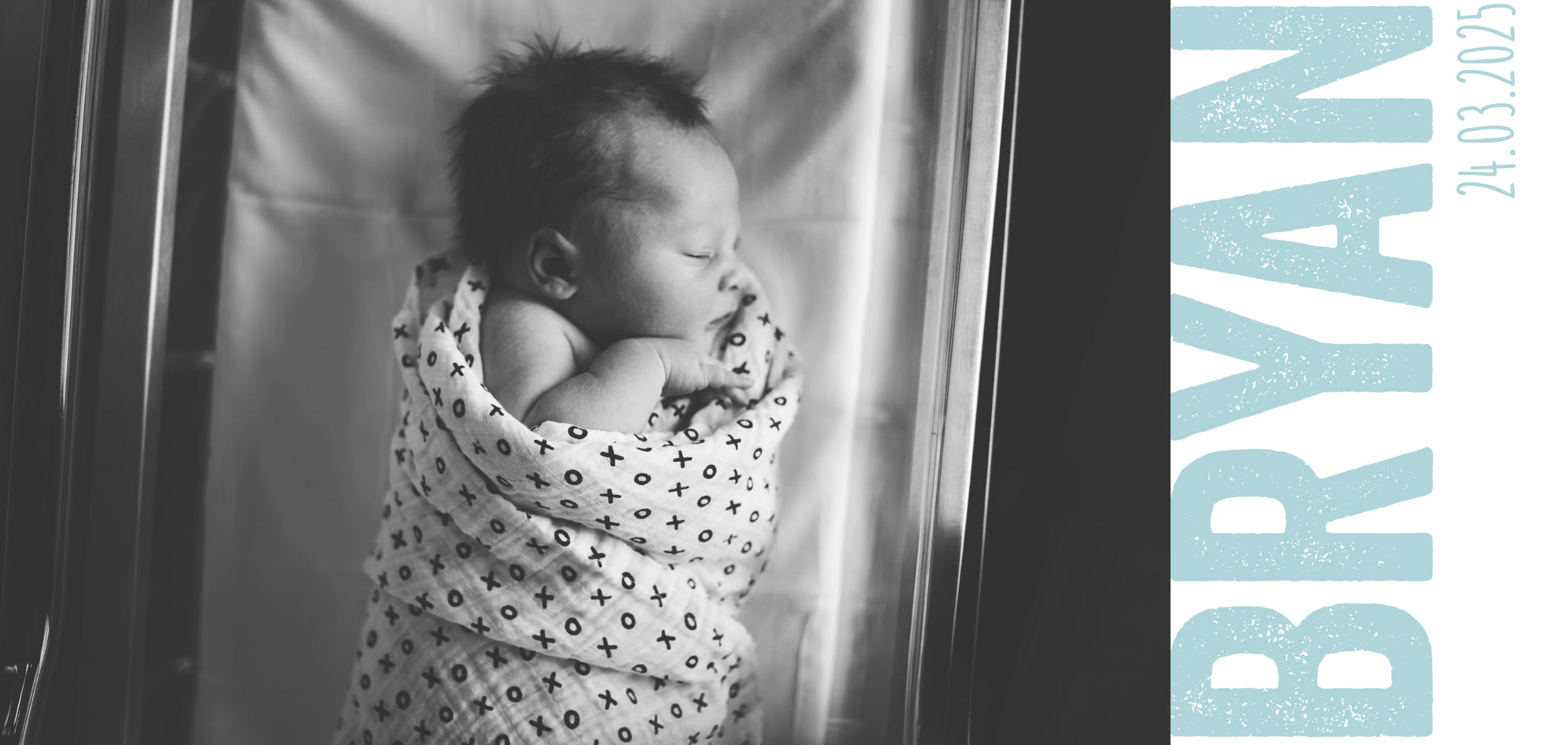 Een hip foto-geboortekaartje voor je zoon of dochter met stoere typografie en ruimte voor een mooie foto. Heb je zelf een leuk idee voor het ontwerp? Maak dan je eigen geboortekaartje en gebruik dit kaartje als basis!
