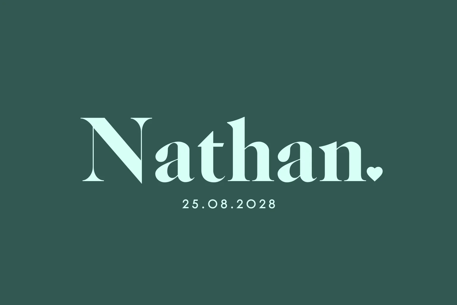 Een stoer geboortekaartje voor een jongen in colorblock thema. Bij colorblock thema worden twee kleuren tegenover elkaar gebruikt wat een opvallend effect geeft. Achter de naam staat een lief hartje.