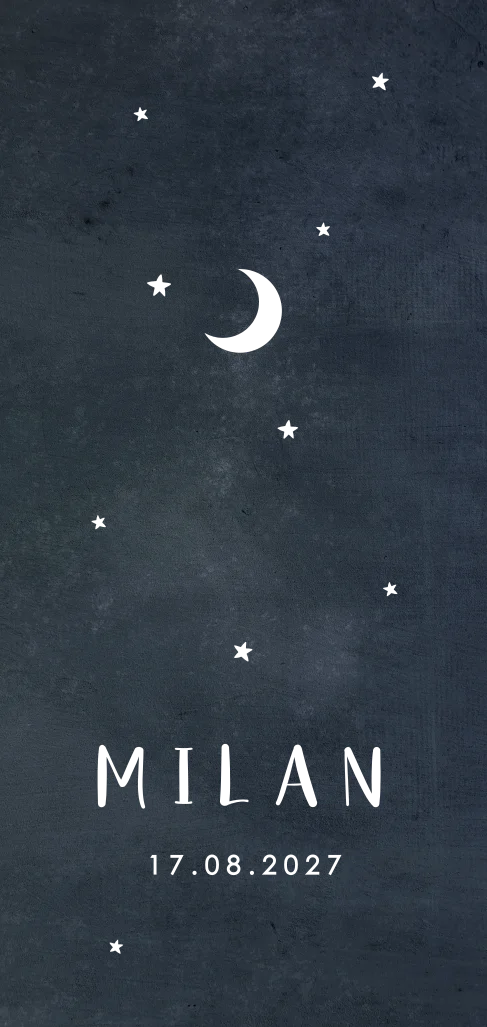 Geboortekaartje jongen donkerblauw met maan en sterren